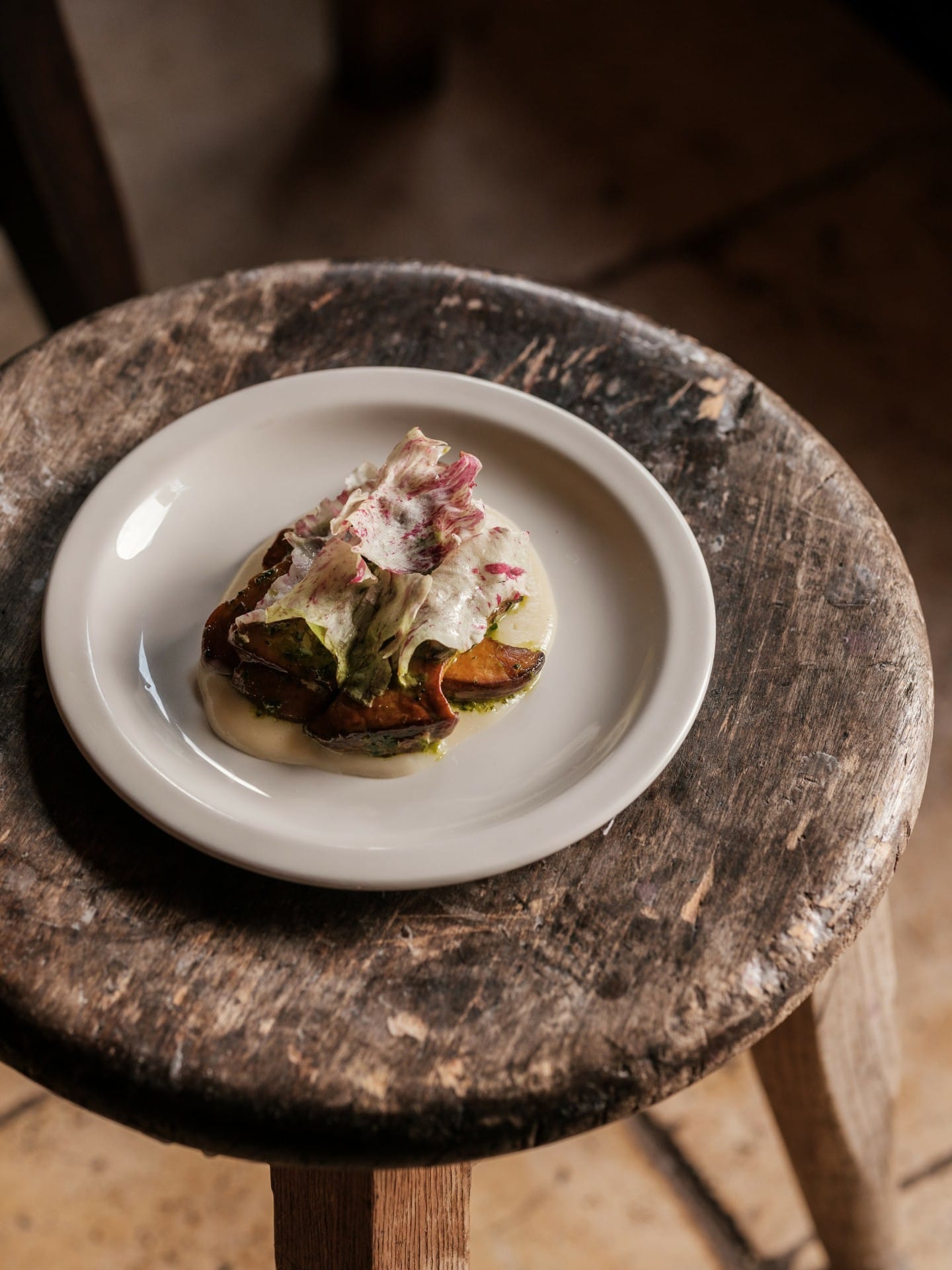 Because here, nothing is left to chance — every ingredient is born from daily conversations with local farmers and producers, and the menu changes with the seasons (and the chef’s mood). From Bruern Farm, where Thomas cultivates the land with a holistic and gentle approach, come the vegetables that end up on the restaurant’s plates, cooked over an open flame, right in front of the guests.